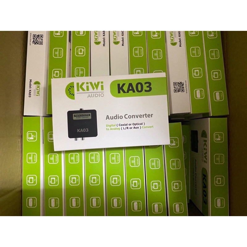 Bộ chuyển quang âm thanh TV 4K quang optical sang audio AV ra amply + Cáp optical Kiwi KA03 thiết kế khá nhỏ gọn với màu đen đặc trưng được in chìm thương hiệu Kiwi ngay trên mặt sản phẩm, kết nối 2 đầu để chuyển đổi âm thanh từ Coxial/Optical sang Analog