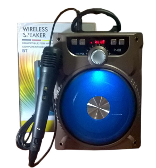 loa karaoke P88, tuy có thiết kế bên ngoài khác biệt nhưng tính năng của loa P88 cũng tương tự như mẫu P89, cũng vẫn hỗ trợ nghe nhạc qua kết nối không dây với các thiết bị, ngoài ra loa còn tích hợp thêm 2 cổng nghe nhạc từ USB và thẻ nhớ, P-88 còn có thêm cổng cắm mic có dây: chúng ta có thể dùng chức năng này cho việc đáp ứng các nhu cầu: đào tạo, bán hàng, quảng bá, hướng dẫn, ca hát giải trí ....